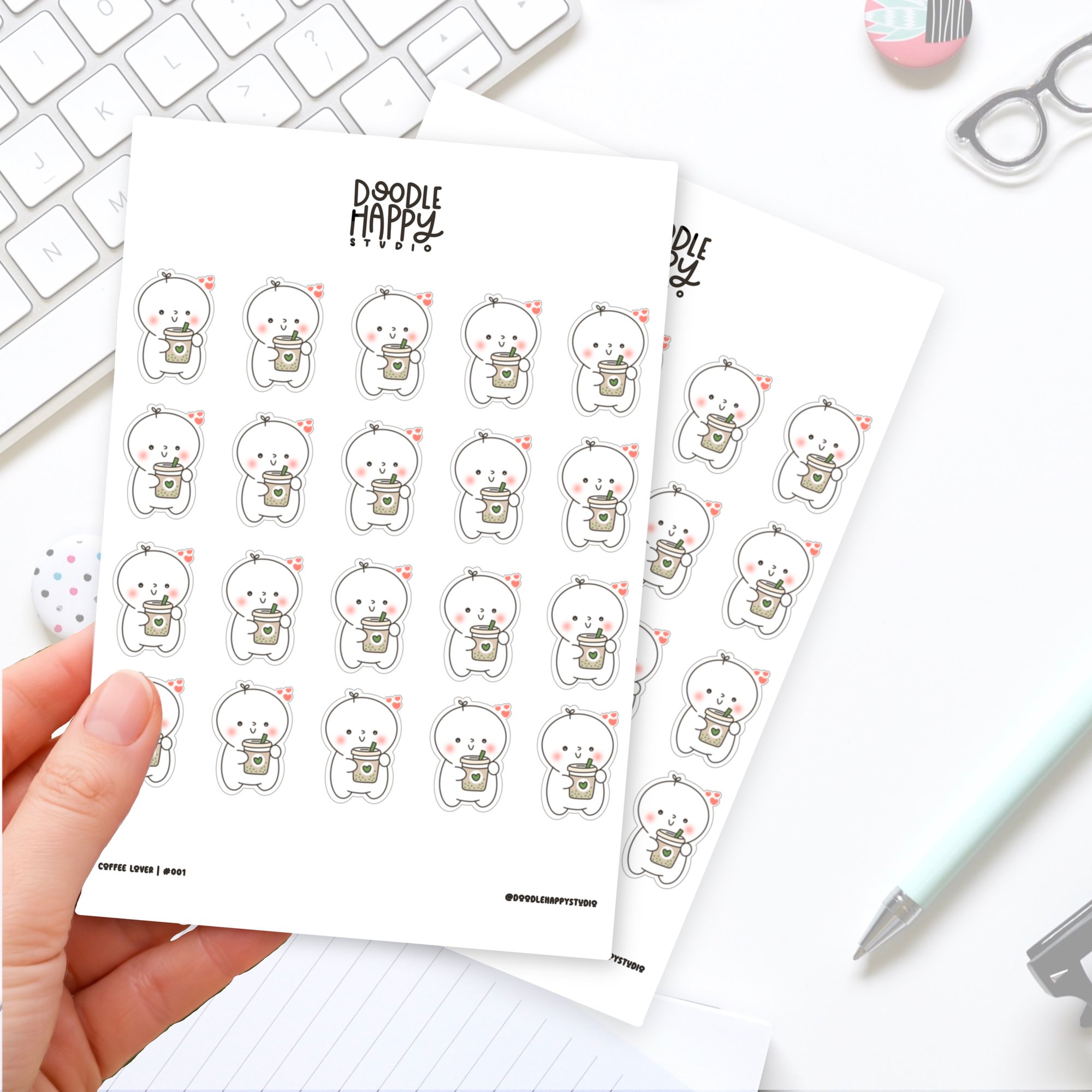 - 1 cute sticker sheet with 25 kiss cut Sprout Coffee Lover Stickers